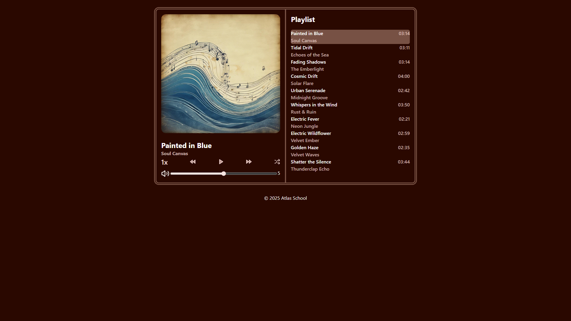 Welcome to the Atlas Music Player project. This application was developed to demonstrate core front-end engineering skills through the construction of a simple, clean, and highly responsive music playback interface. The project emphasizes functional, component-based architecture and modern development tooling.