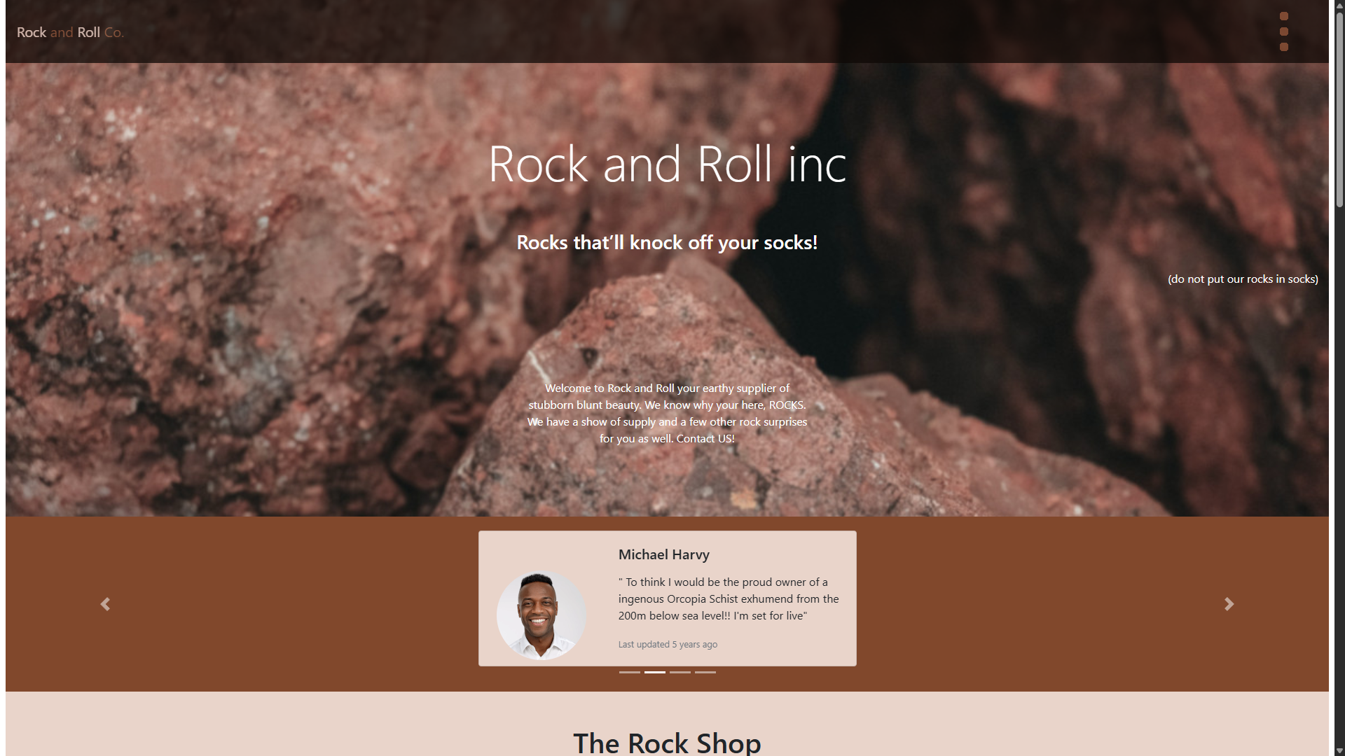 This is a fun website I made using HTML/CSS and Bootstrap. This was a project to practice using the Bootstrap framework for styling and UI. The mock content was staged as an Excavation Company that specilizes in collecting and selling various rocks. Featuring actual rock knowledge the links in the footer are hilarous and should not be overlooked.